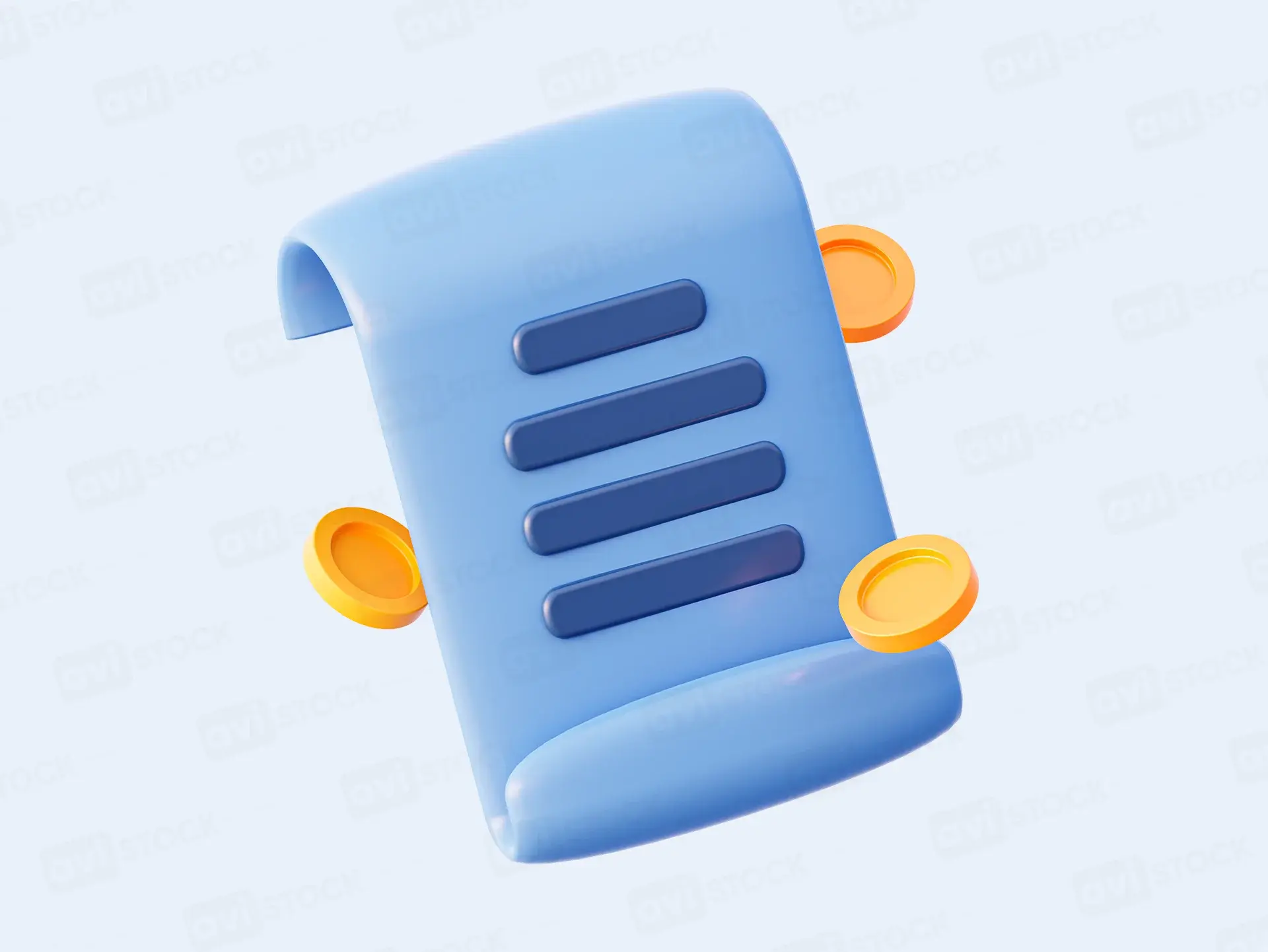 Объемная 3D-иконка в голубых и золотых тонах, изображающая чеклист с монетами — символ банковских операций, инвестиций и контроля бюджета. Подходит для банковских сервисов, инвестиционных платформ, финансовой аналитики, отчётности и биллинга.