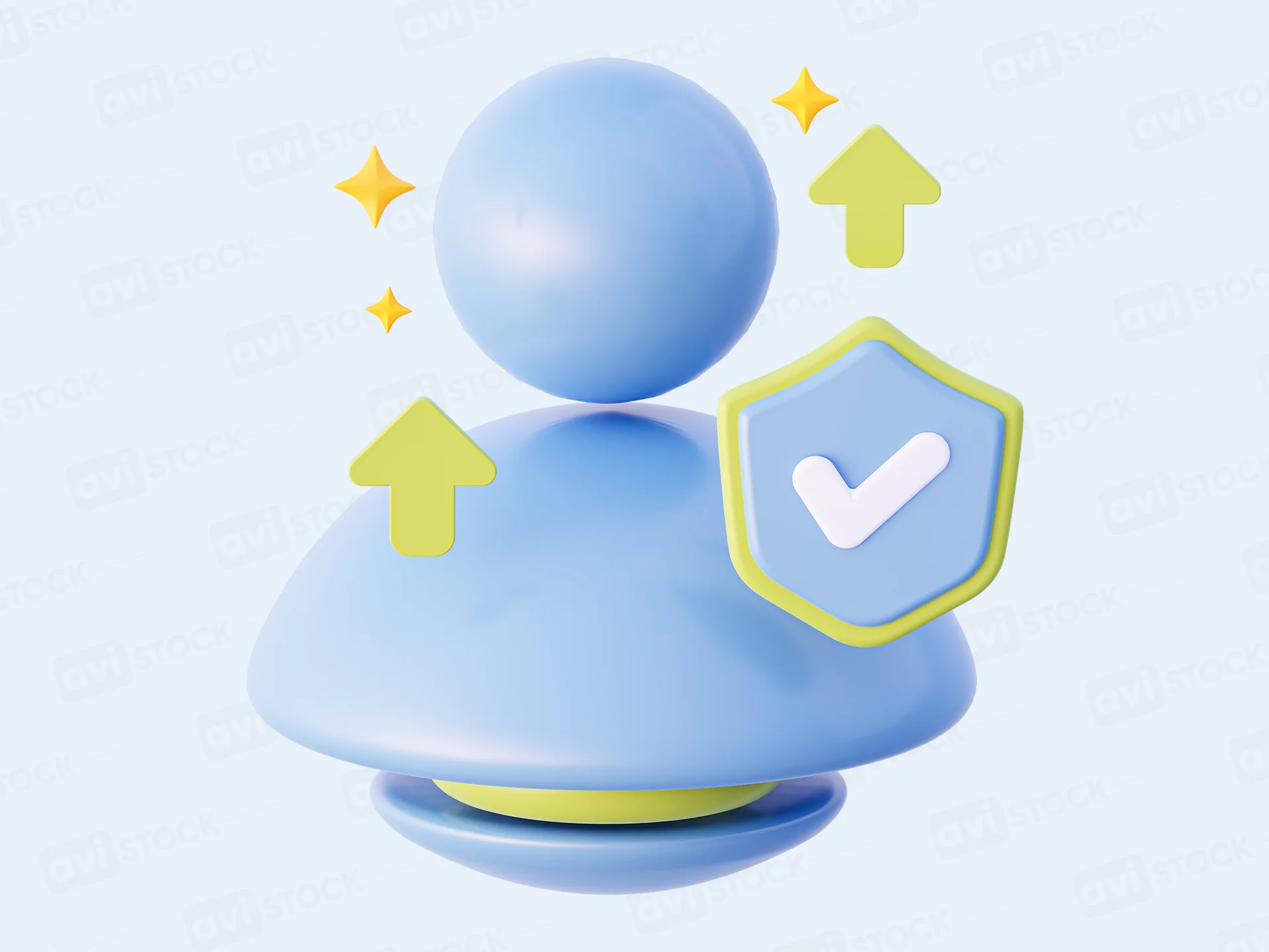 3D иконка пользователя с щитом и стрелками роста | Авторская 3D иллюстрация в высоком разрешении (PNG)